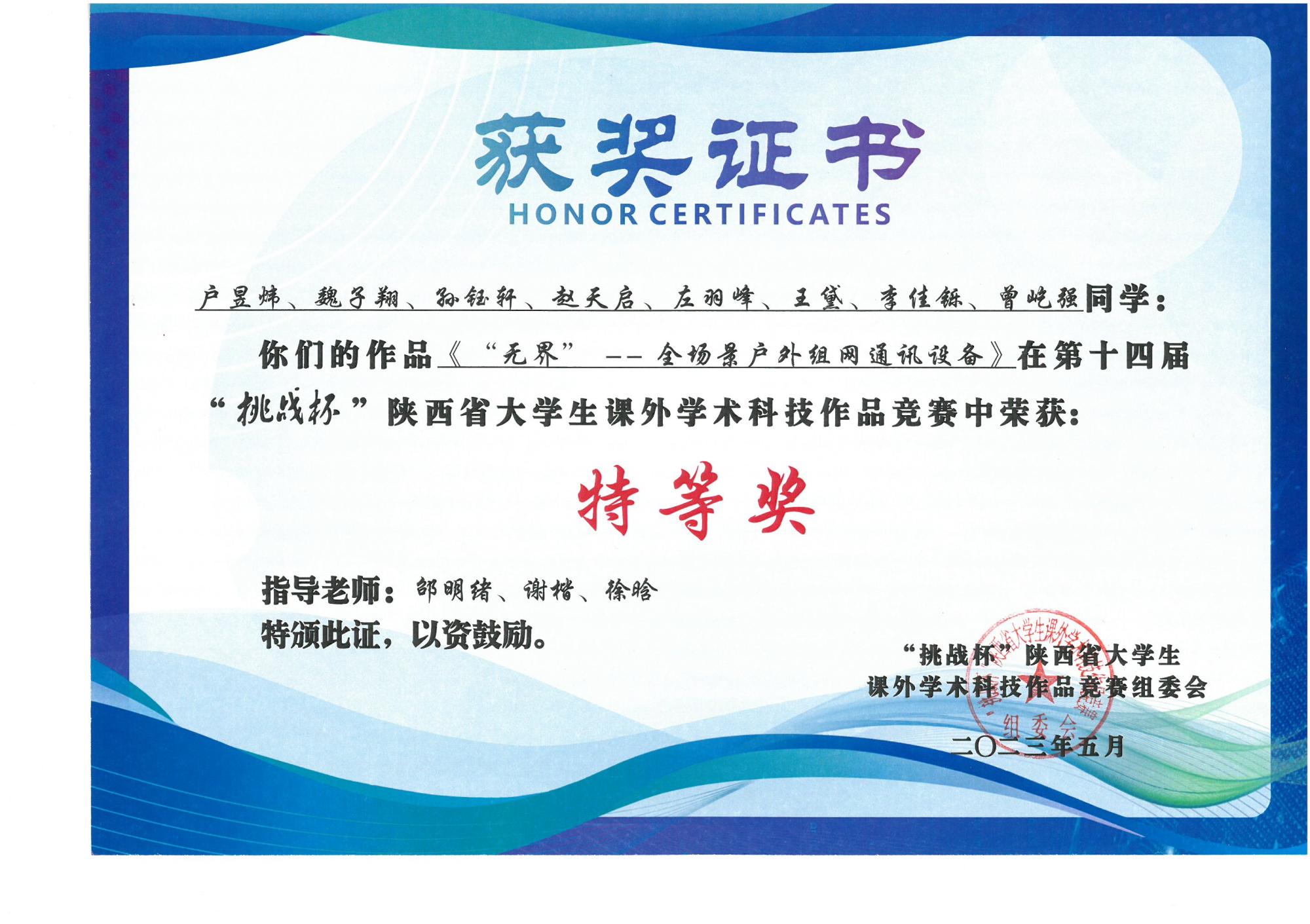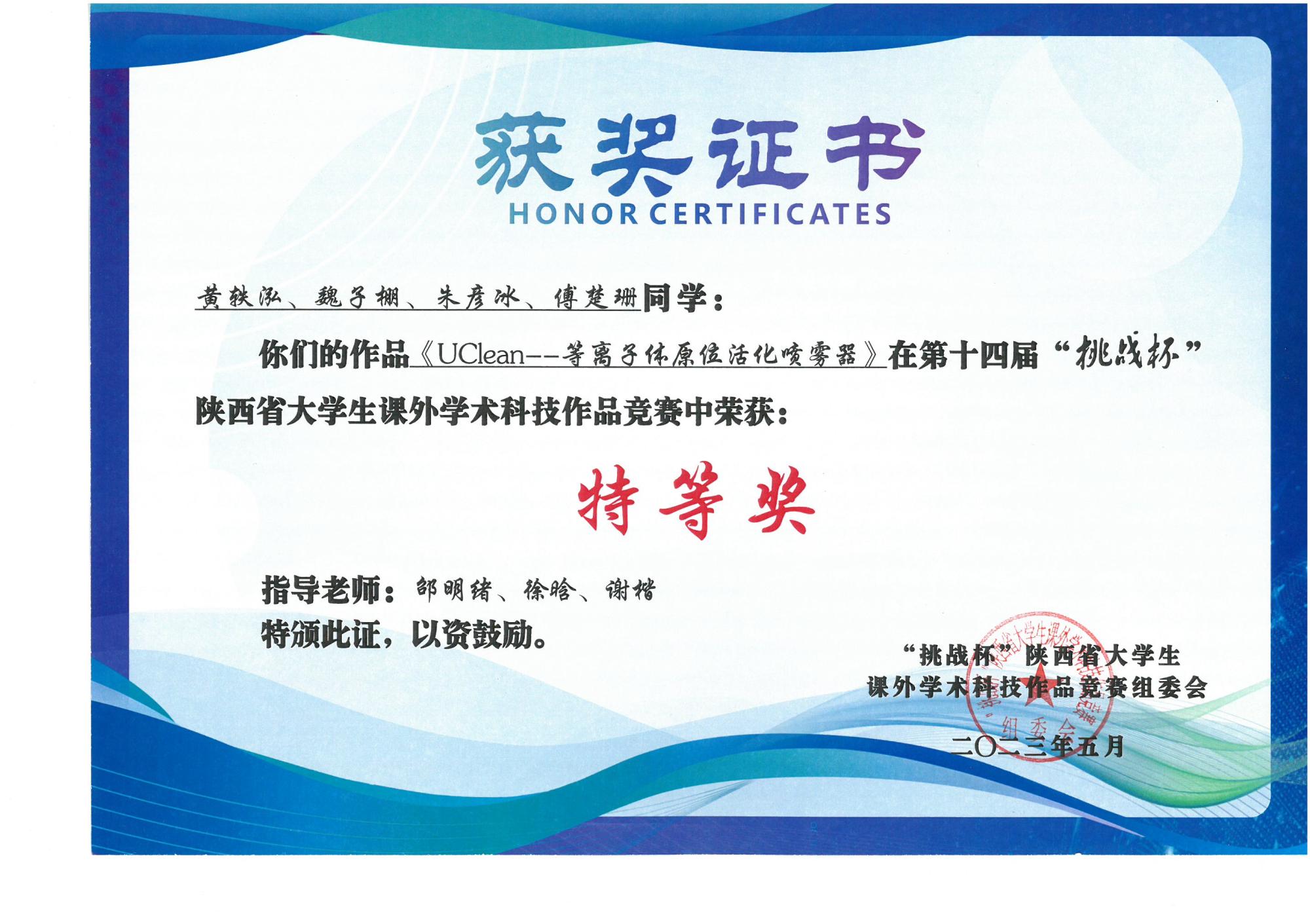 (通讯员 户昱炜)近日,第十四届“挑战杯”陕西省老员工课外学术科技作品竞赛在长安大学落下帷幕,由太阳成集团tyc7111cc师生完成的《“无界”——全场景户外组网通讯设备》和《U-Clean ——等离子体原位活化喷雾器》两件作品在本届大赛中斩获特等奖。