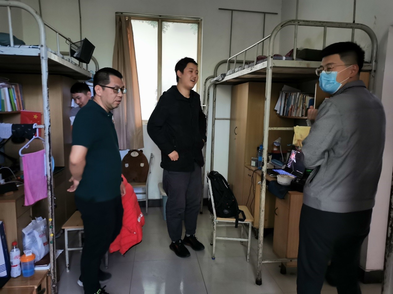 5月11日下午,公司党委书记朱文凯、党委副书记刘涛和毕业生辅导员席慧再次来到竹园宿舍,实地探望已经返校的员工,关切询问返校员工毕业设计、补考重修等学业上的困难和日常生活中的问题,及时帮助员工解决,并叮嘱同学们返校后一定要注意个人健康和卫生消杀,公司将尽最大努力为同学们做好服务工作。