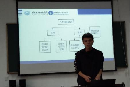 控制理论与控制工程专业硕士二年级的黄喆以“努力”二字作为主题进行了分享,整场分享分为“努力的方向”、“努力的方法”和“努力的心态”三部分。在讲述“努力的方向”时,黄喆表示,“学会思考”是成长过程的重中之重,思考是最艰难的过程,而要获得更高成就必然需要不断地思考。对于“努力的方法”,黄喆通过三个方面进行了分析,首先是注意效率,学会事半功倍,他引用了马克思的“两点论和重点论”分析了“舍弃”与“选择”;其次是学会合作,与周围同学建立起有竞争意识的合作关系,相互促进,合作共赢;最后是重视复盘,不断自我迭代和自我革新。在谈到“努力的心态”时,黄喆表示不应为了融入多数而随波逐流,现在的年轻人需要适时“make a difference”。