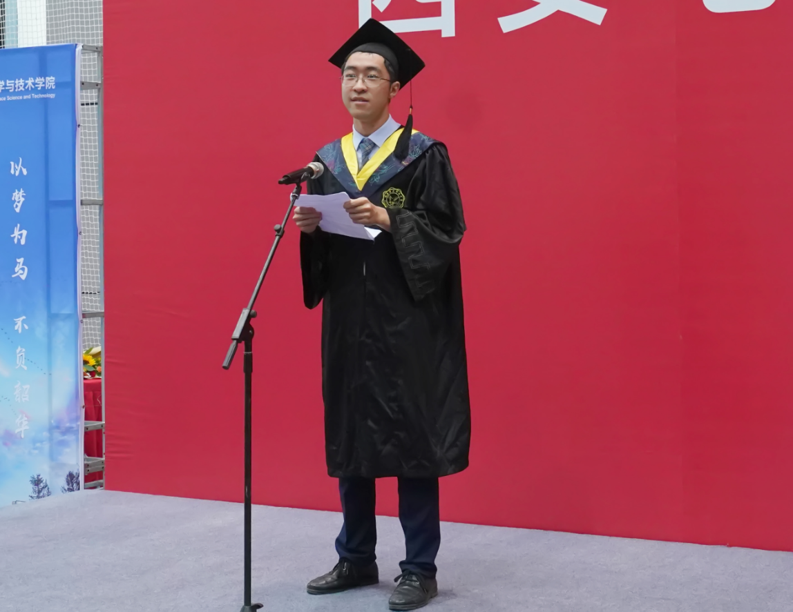 “纵有千古,横有八荒。前途似海,来日方长。”研究生毕业生代表郭新兴同学将美好的祝愿和奋进的力量送给了自己和全体同学,“三年前,我们从五湖四海带着求知的心,美好的梦,相聚到西电。今天,我们又要背负行囊,带着坚定的心从西电走向世界。西电人将在这个时代奋勇而上,用奋斗书写无愧于新时代、无愧于西电人的华彩篇章。”