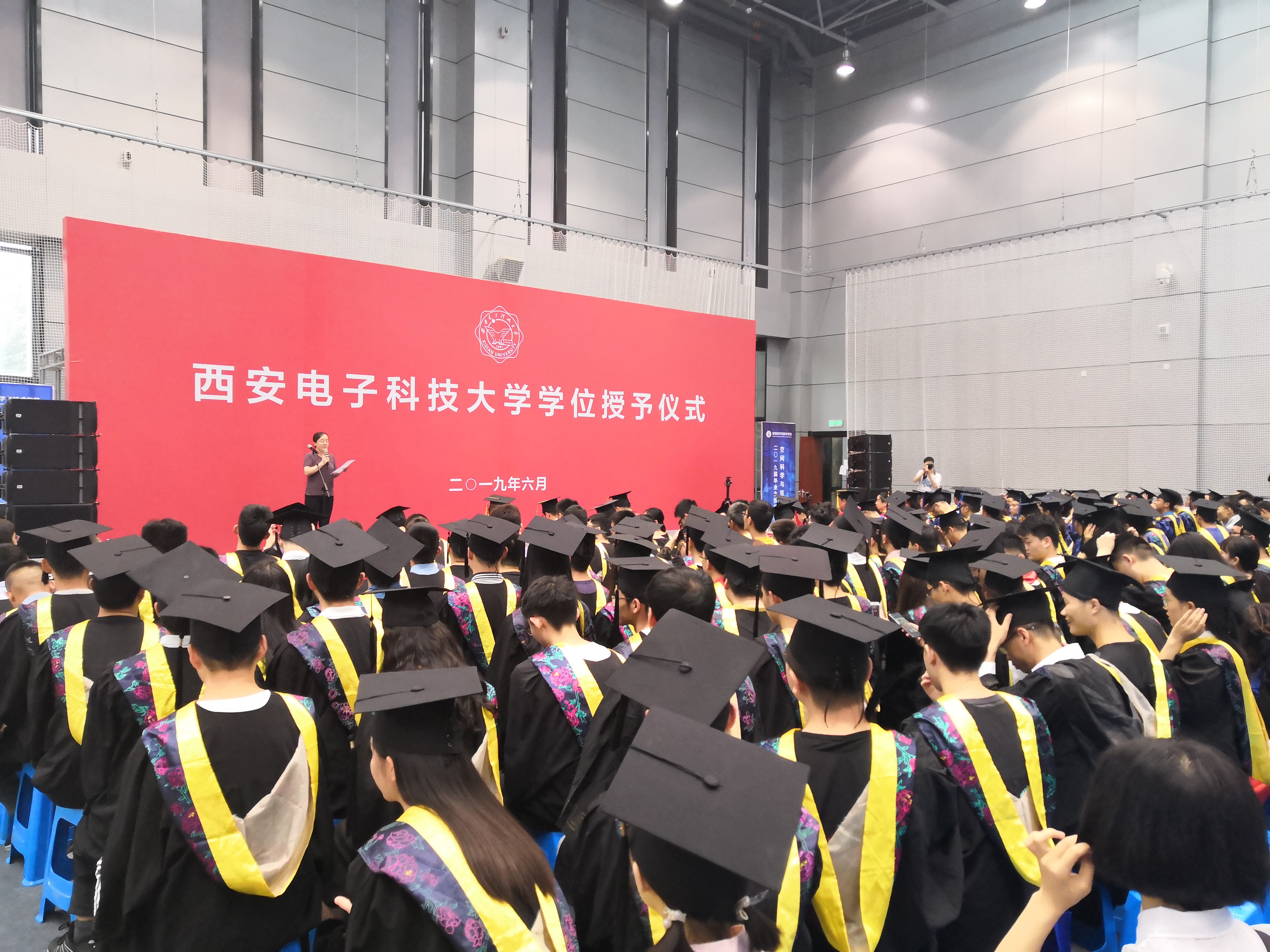 (通讯员 席慧)碧空万里,南山如黛,6月21日上午,太阳成集团tyc7111cc2019届毕业生学位授位仪式在南校区远望谷体育馆隆重举行。公司党委副书记杨银堂教授、公司执行经理李小平教授、副经理刘彦明教授及部分导师和全体2019届毕业本科生、毕业研究生和部分毕业生家长共同参加了授位仪式。本次授位仪式共授予7人博士学位,62人硕士学位,122人学士学位,仪式由副经理姜莉莉主持。