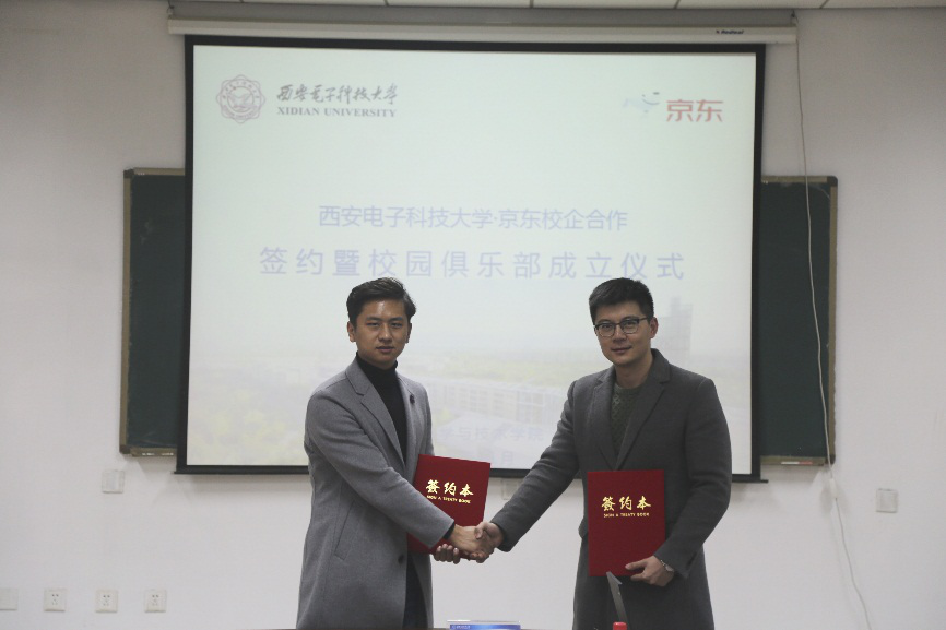 刘涛和郑炎分别代表双方签署了校企合作协议。朱文凯和樊琪共同为太阳成集团tyc7111cc京东校园俱乐部揭牌,宣布俱乐部正式成立。