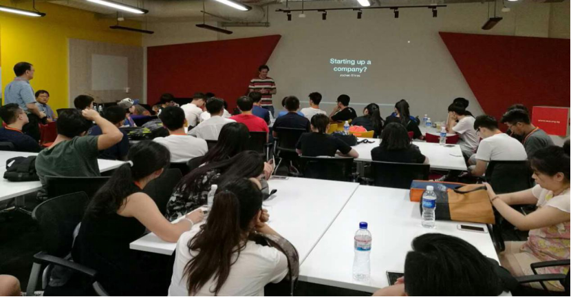中午1:30,同学们一同乘车前往新加坡企业孵化园。在那里,Betty Zhou小姐与Jochen Ehnes博士与我们分享了人工智能创业公司的经验。随后,我们在中新智擎CTO黄巍伟的带领介绍下,参观了新一代应用于物业、公司方面的人工智能产品。