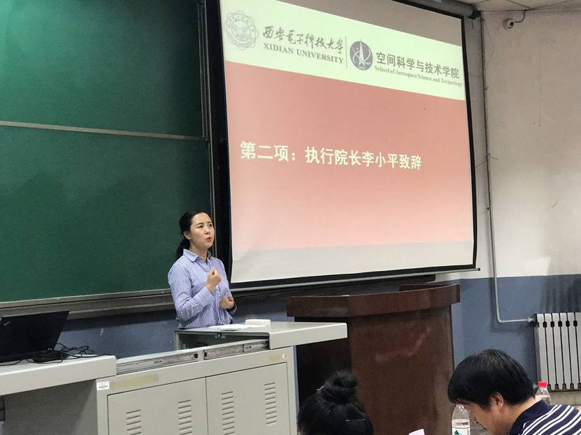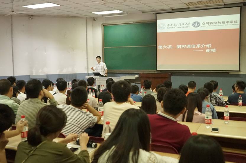 经理助理冯冬竹副教授详细介绍了公司公司产品工作,向新生展示了公司的科研平台并展望了未来。测控通信系主任谢楷教授、导航控制系许录平教授和智能探测系主任闫允一副教授分别介绍了各系的基本情况并给予了新生入学和成长规划建议。