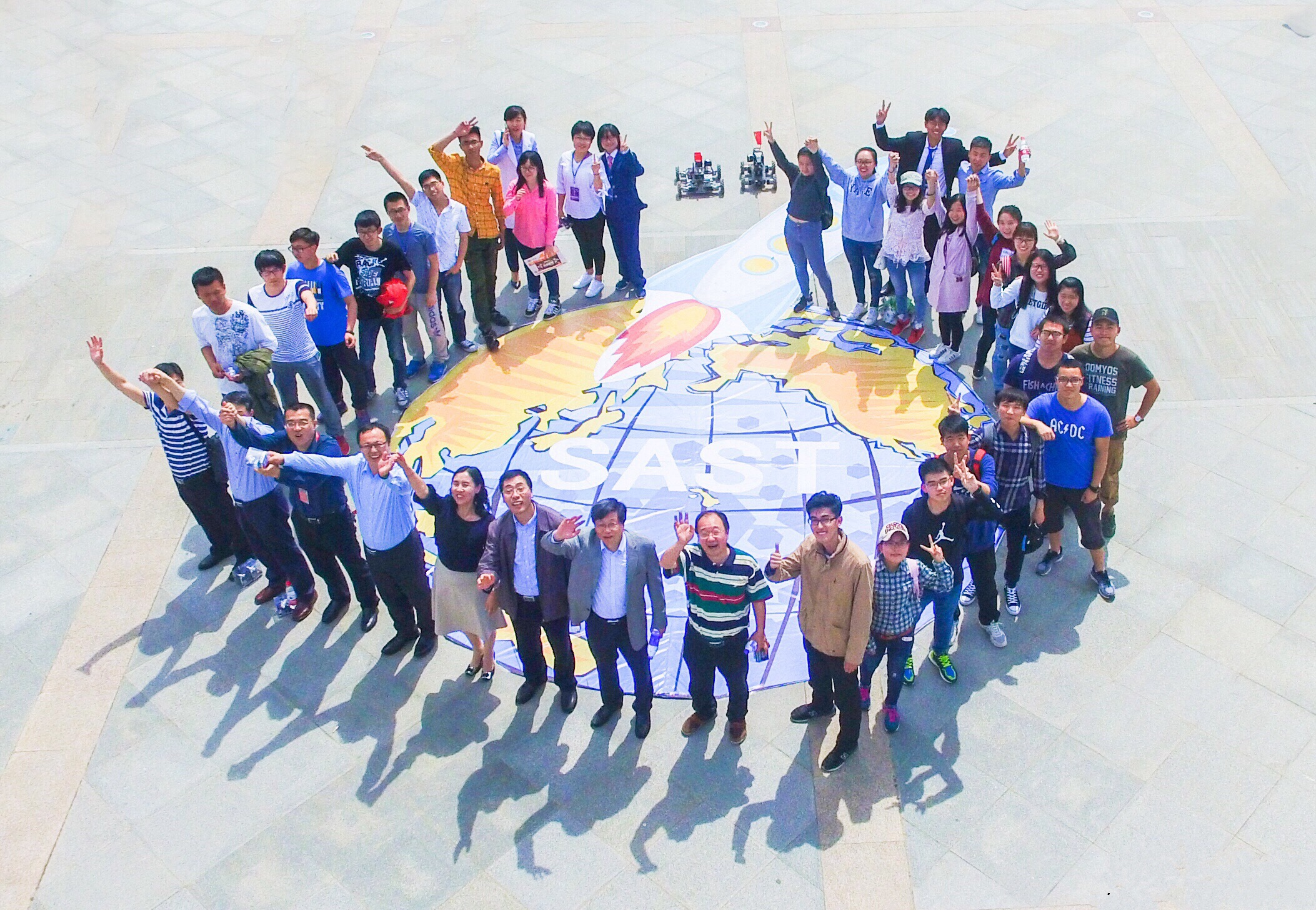 航天知识展分为世界航天史、中国航天史、长征系列运载火箭、神舟飞船的构成、天宫系列飞行器、墨子卫星等不同展区,通过图文并茂的展板和生动的解说,向师生全面展示国内外航天事业发展的巨大成绩和历史沿革,以及航天领域的前沿技术。现场师生还踊跃参与了航天知识有奖问答、无人机创意航拍、robmaster机器人表演和体验等活动。