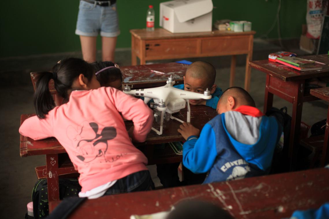 随后公司同学向小朋友们展示了大疆科技无人机和“战车”,并且对有兴趣的小朋友进行手把手教他们如何操作。之后同学们参观了公司,分组和不同年级的小朋友进行了有关学习生活上的交流。看到教室里坑坑洼洼、破旧的桌椅板凳,斑驳低矮的平房宿舍却被孩子们收拾的干干净净、整整齐齐、窗明几净,更是被孩子们天真无邪的笑容和纯净渴望的眼神触动心弦,同学们纷纷表示今后要更加珍惜自己的学习生活条件,并尽自己所能为这里的孩子们多做一些事。不少同学更是留下了联系方式,表示如果有任何需要帮助的地方随时和他们联系。公司的老师们和中学领导、部分老师进行了座谈和交流。