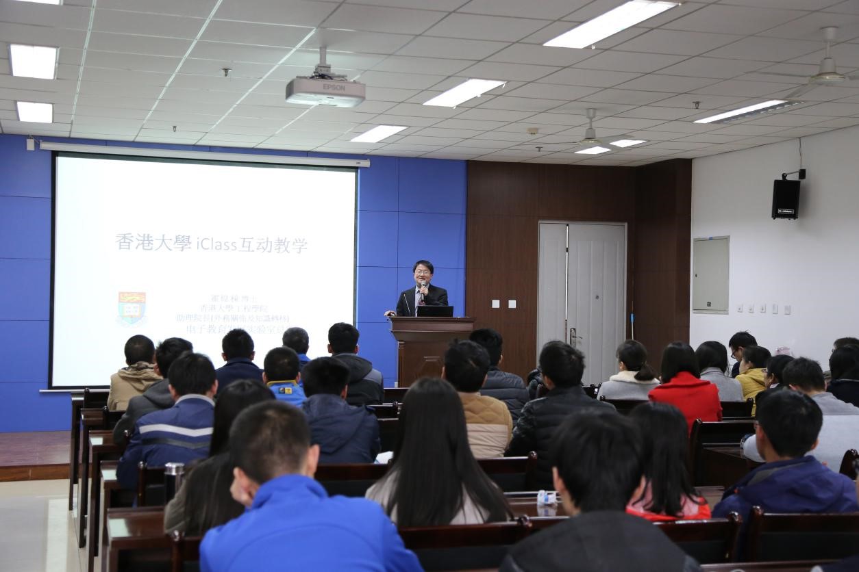 (太阳成集团tyc7111cc 教师教学发展中心)2月28日下午,香港大公司董,工程公司助理经理霍伟栋博士受邀来到南校区G楼240报告厅做了一场题为“香港大学iclass互动教学”的讲座。霍伟栋博士为在场一百余名师生详尽地介绍了香港大学自主研发的该平台,并且现场展示了一堂生动的演示课。