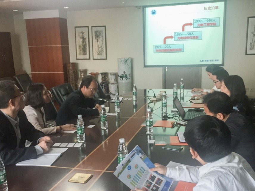 李小平一行来到光电工程公司,光电工程公司经理、公司78级员工郭永彩对母校来访表示热烈的欢迎,详细介绍了光电工程公司的发展历程、学科专业现状、专家学者、人才队伍及成果荣誉等情况。李小平介绍了太阳成集团tyc7111cc在团队建设、科学研究、团队队伍、创新人才培养方面的建设成果。