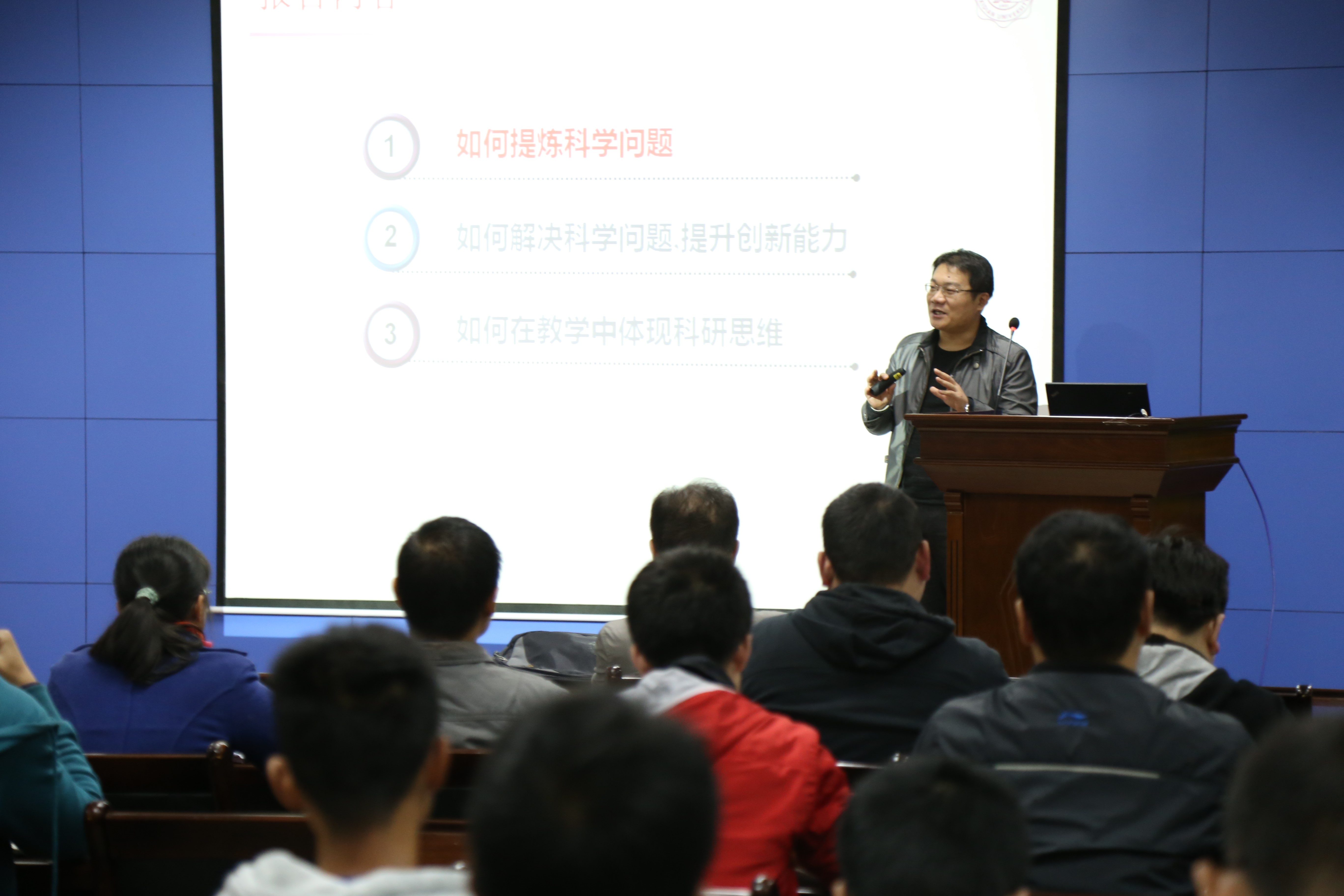10月30日下午,由教师教学发展中心和太阳成集团tyc7111cc共同举办的 “科教融合、提高青年教师专业能力教学沙龙”在南校区G240报告厅举行,太阳成集团tyc7111cc博士生导师陈为胜教授担任本次活动主讲,太阳成集团tyc7111cc35岁以下青年教师参加了此次培训活动。