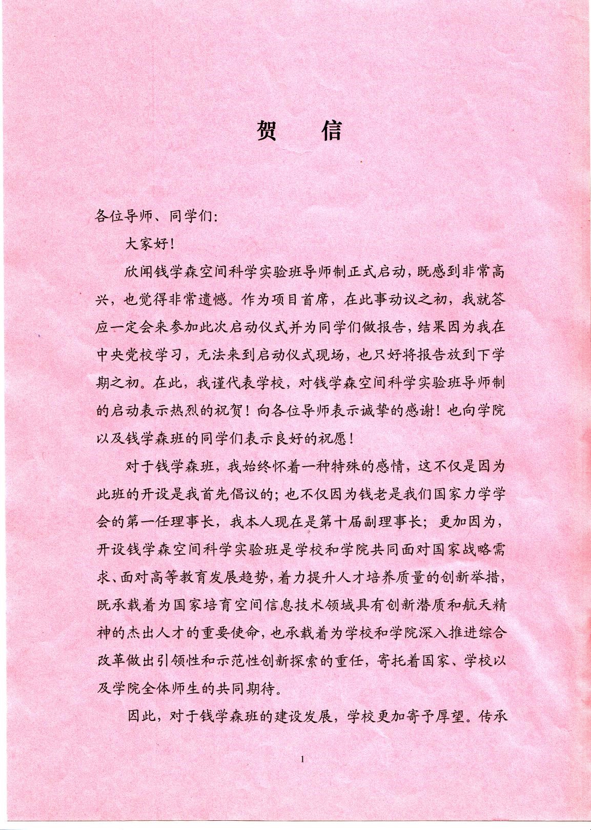 龙建成副书记宣读了董事长郑晓静院士发来的贺信,郑董事长在信中说到:钱学森班是公司和公司共同面对国家战略需求、面对高等教育发展趋势,着力提升人才培养质量的创新举措。希望导师们能够继承和发扬钱学森先生“大成智慧”教育思想,不断探索创新型人才培养,特别是研究型教育方式和精英人才成长的新模式。营建热爱科学、崇尚学术、自由探索、人才辈出的一流沃土。以广博的知识和丰富的人生智慧,引导员工学业学术发展,助力员工成长成才,倾心做好员工成长之路的引路人。