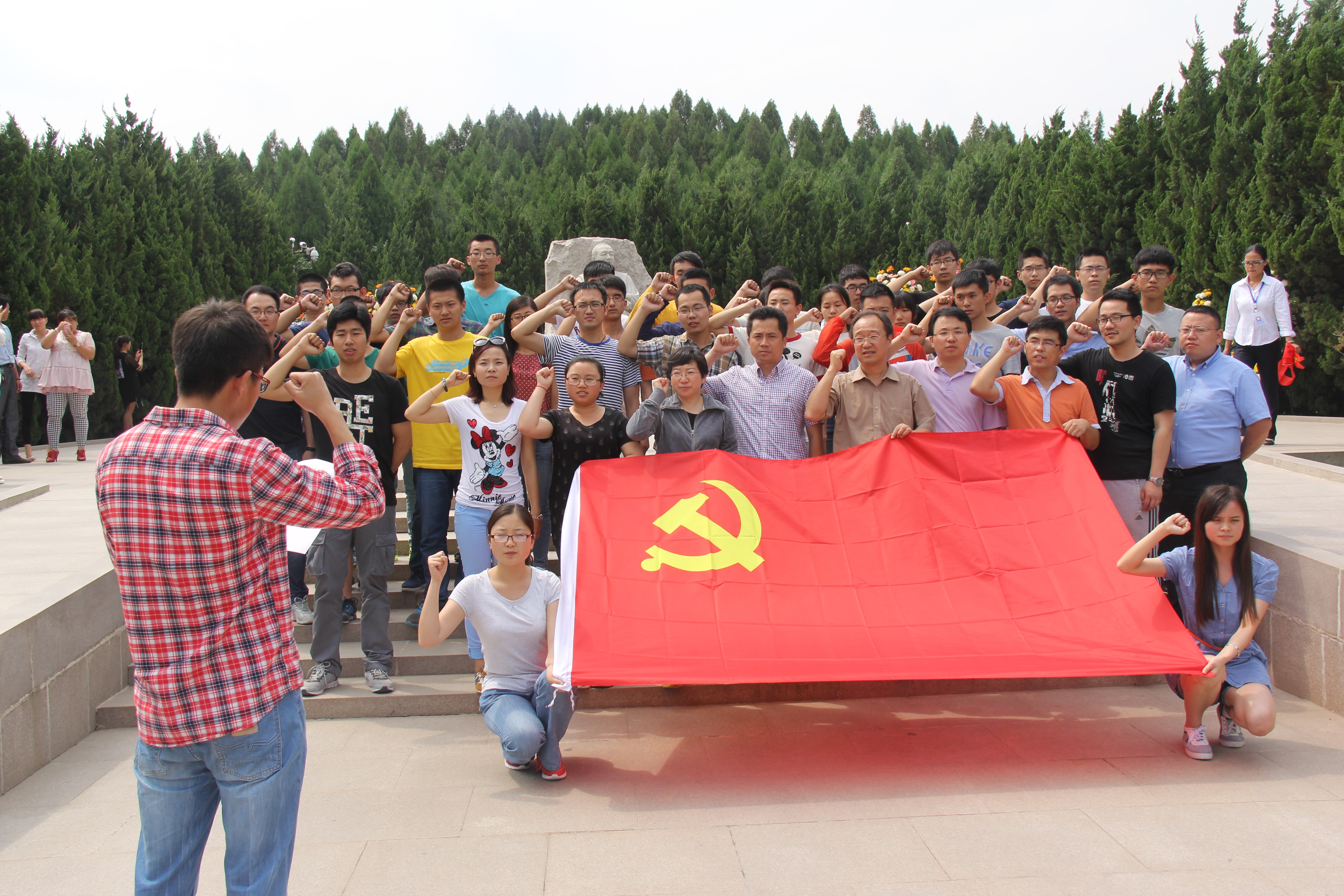 习仲勋同志是老一辈无产阶级革命家,伟大的共产主义战士,杰出的无产阶级革命家。一来到庄严肃穆的习仲勋陵园,实践团的师生们不自觉的就在内心升腾起一种崇高敬意感,全体师生怀着崇敬与缅怀的心情在习老的雕塑前敬献鲜花,并在庄严的党旗下重温了入党誓词。