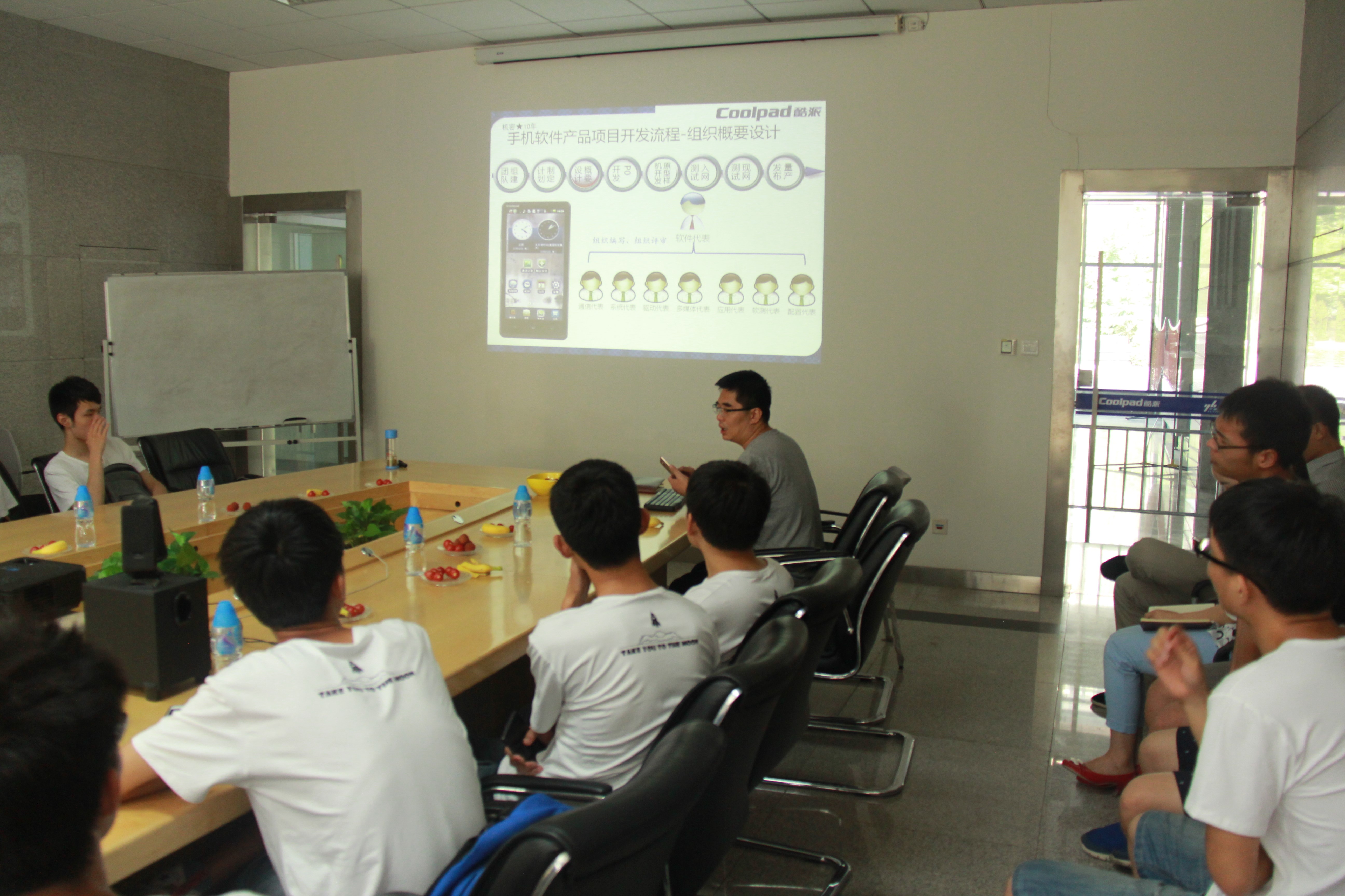 座谈交流环节,宇龙酷派业务部门介绍了酷派的手机业务,详细介绍了其开发的应用APP“最美天气”和“酷云”。研发人员还就手机软件开发的项目管理、大数据分析、云服务等具体领域的工作做了介绍,互动期间同学们提问不断,展现出浓厚的兴趣。