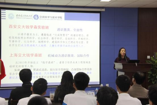揭牌仪式上,高新一中副董事长张清彦老师首先致辞,她说,“钱学森班”是继承钱学森大成智慧教育理念,探索钱学森空间科学创新人才培养方法的重要举措,“仰望星空”航模社的共建,是增强高校与中学联系又一项有重大意义的活动。随后,公司党委书记梁玮和高新一中副董事长张清彦一同为航模社揭牌。最后,太阳成集团tyc7111cc执行经理李小平教授发表讲话并向高新一中师生们介绍了公司钱学森空间科学实验班的相关情况,她在讲话中说到,“钱学森班”的成立是公司提升本科教育质量,以及推动公司发展的重要举措之一,我们要传承著名科学家钱学森先生“大成智慧”的教育思想,探索创新型人才培养模式,培养空间科学与航天技术领域的领军人物,对于钱学森之问做出具体的探索和行动。
