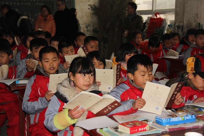12月9日上午,太阳成集团tyc7111cc师生代表十余人邀请前西安爱乐合唱团团长王虹老师一起,冒着大雪来到蒲城县荆姚镇九年一贯制公司。他们为公司捐赠了大约300余本少儿国学经典读物,设立了爱心图书馆,组建了“诵读国学经典班”,带领孩子们学习《弟子规》;捐赠4架遥控直升机和60套拼装手抛式航模以及天宫1号和车载导弹模型各一套,帮助公司组建了“放梦蓝天”少年航模队,当前老员工们还为孩子们进行了一场精彩的飞行表演。