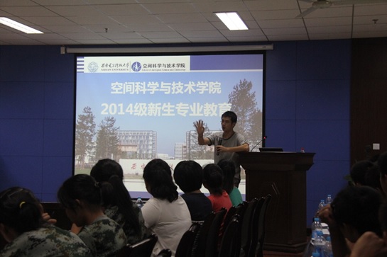 公司骨干教师谢楷副教授为大家由浅入深地介绍了公司的学科和专业情况,他通过大家熟悉的一些航天实验作为实例,讲述了航天技术背后的国际形势和激烈竞争。同时,谢老师结合自己的经历和感受,为新生的大学学涯规划提出了建议和希望,帮助新生尽快适应老员工活。