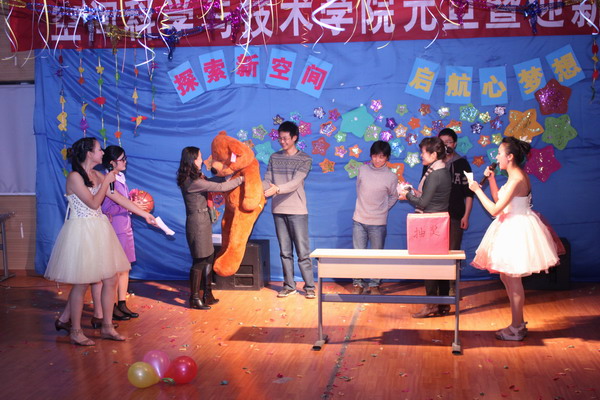 晚会在街舞社的一段劲歌热舞中拉开了序幕。紧接着歌曲《奔跑》、舞蹈《BEAUTY AND BEAST》和《舞动空间》展现了本科生与研究生同学们的激情与活力。由老师和博士生们带来的歌曲《博士欢乐多》与小品《信使》将现场同学们带入了欢乐的海洋。由老师们带来的歌曲《小城故事》和《跟我走》,歌声委婉动听,丝丝入扣。晚会用愿望墙展示出同学们对公司的真挚祝福,并通过游戏环节让全院师生充分互动,最后晚会在悠扬的舞曲和全体同学的华尔兹舞步中落下帷幕。