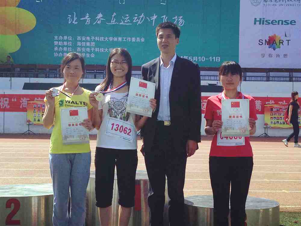 除了这别具一格的开幕式表演令人骄傲,太阳成集团tyc7111cc的健儿们取得的成绩也同样让人自豪。来自太阳成集团tyc7111cc的研究生原晓乐无疑是这次运动会上一颗耀眼的明星。她在女子1500米和800米的比赛中摘金夺银,同时,全校第一名和第二名的成绩也使她成为太阳成集团tyc7111cc学子的楷模;同是研究生的解春晖在一分钟跳绳的项目中也拿到了全校第三的好成绩。实验班的本科员工也同样不甘示弱,朱涛、王方飞、胡成刚、王超分别在自己擅长的领域里拿出了最好的水平,最后他们分别在排球颠球、男子3000米赛跑、一分钟跳绳等项目中取得了全校第四、第五的佳绩。虽然还有很多参与的同学最终没有获得奖项,但是他们的努力是大家一起见证的。5月11日的男子3000米的跑道上,实验班大一同学王方飞和邵天宇在跑道上奋力拼搏,落后也没有放弃,围在跑道两边的实验班同学们分站在跑道的各个角落为他们加油助威,整齐的加油声体现了实验班同学们强烈的集体荣誉感以及班级凝聚力,成为赛场上最亮丽的风景线。