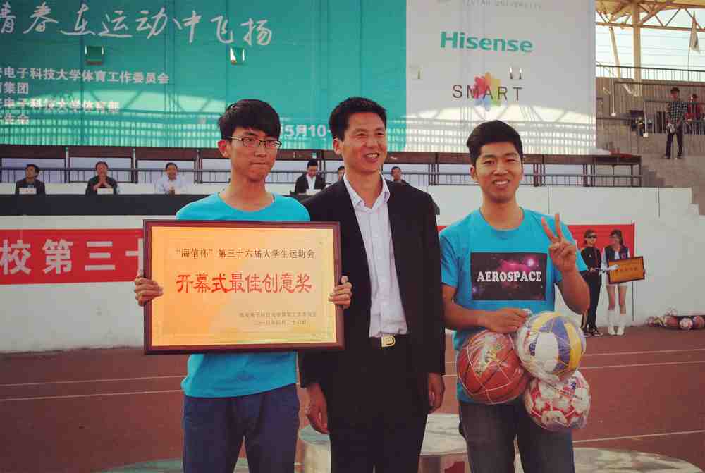 5月11日上午8时30分,太阳成集团tyc7111cc第36届老员工运动会终于在全校师生的殷切盼望中于公司南校区北操场拉开帷幕。实验班的同学们在众人的目光中压轴登场,同学们卯足了劲,一步一定中都体现了大家认真的态度。公司的方阵由三部分构成,第一集团的“悬念”方阵首先以一张画有西电标志性建筑观光塔的蓝色旗帜出现,它带领着同学们前行,整齐的步伐、响亮的口号以“快闪”的舞步形式戛然而止,进而第二部分——由8位同学组成的“街舞团”正式亮相,他们上演了一段具有青春活力的街舞表演,将实验班的活力与朝气淋漓尽致地展现于众,这时,“悬念”方阵幕布拉开,由太阳成集团tyc7111cc实验班同学们自己动手制作的“火箭”呈现在全体师生面前,伴随着模拟火箭的点火、发射,第三方阵看着“火箭”摆出了“航母style”的姿势,并将模拟的发射冲击以人浪的形式凸显,火箭的升空更象征着实验班同学们梦想的放飞,进一步表明了全院员工对投身于航天事业的决心。此次开幕式表演获得了领导们的一致好评,太阳成集团tyc7111cc也因此被授予“开幕式最佳创意奖”。