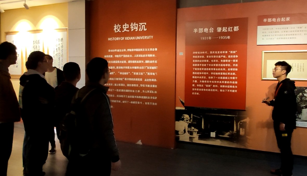 在校史馆,公司191601班全体成员在班长兼讲解员孙榕泽的带领下探索永不消逝电波的前世今生,追寻半部电台起家的恢弘历史,体悟长征路上办学的光辉岁月,参观过程中,同学们屡屡感叹红色电波传遍大江南北的不朽功勋和西军电自强不息建设祖国的辉煌篇章。