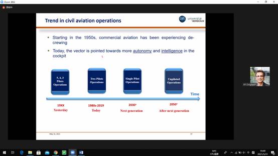 Ali教授以“Model-based fault management for aerospace systems: A look backwards and forwards”为题,介绍了基于模型/数据驱动的故障管理的研究历史及现状,讨论了现今学术方法与航空航天实际应用的差距,分析讨论导致该局面出现的原因,并提出新的基于分布式/协作模型的故障管理方法,以满足航空航天工业的预期需求,最后Ali教授也介绍了未来民航运营的相关机遇与挑战。