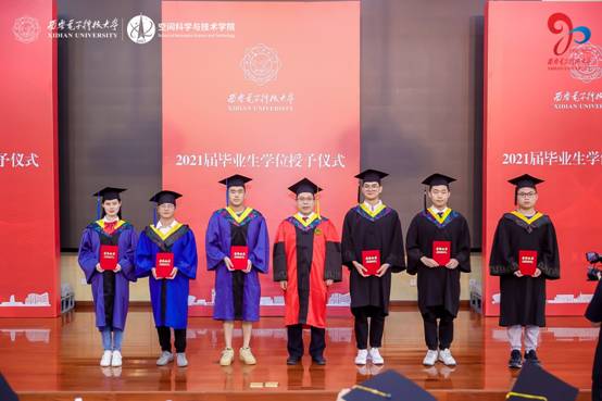 刘彦明和石磊分别宣读了授位决定和表彰决定,张进成为优秀毕业生代表颁奖,对荣获优秀毕业生标兵、优秀毕业生、优秀毕业生干部等荣誉的空间学子吴萌华等6人进行了表彰奖励,2021届毕业生中,涌现了以陕西省优秀毕业生干部、2017级钱学森班团支部书记沈子卓,SCI期刊第一作者黄建强等为代表的一大批优秀学子,他们作为“学在西电”的生动诠释,将激励一届又一届空间学子不断奋斗,砥砺前行。