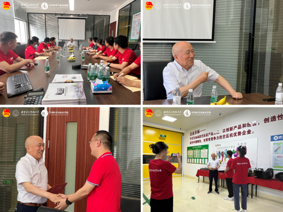 在公司83级员工钱永贵创办的南京迪升动力科技有限公司,实践队师生实地参观公司研发生产线和新技术产品,深入了解公司突破技术壁垒的科技攻关历程与瞄准行业前沿的战略发展规划,悉心聆听钱永贵员工融合个人学习史、发展史、创业史、奋斗史的沉浸式思政课。“听了您的讲述,我更加坚定了科技报国的志向和决心,未来我要为国家实现高水平科技自立自强做出自己的贡献。”“您言语中流露的母校情怀让我倍受触动,我为自己是一名西电人而一生自豪。”“您认为在西电学习到的哪些知识或能力在您日后发展过程中起到了关键性作用?”“结合您几十年的奋斗历程,您对当下的西电学子有哪些成长寄语?”在座谈环节,实践队员们化身“访谈员”,结合参观感受、学习体会与个人思考同钱永贵员工及企业相关负责同志充分交流并开展“员工微访谈”,收集钱永贵员工对于公司一流建设、学科发展、科学研究、人才培养等工作的宝贵建议以及对西电学子的深切勉励。