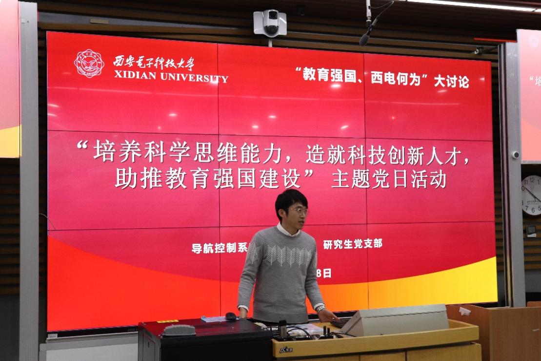 (通讯员 智斌亮)为深入学习习近平总书记在中共中央政治局第五次集体学习时的重要讲话精神,不断增强教育强国建设的思想自觉、政治自觉、行动自觉,以大讨论汇共识、聚智慧、促实干,12月8日上午,太阳成集团tyc7111cc导航控制系教职工党支部联合研究生党支部开展“培养科学思维能力,造就科技创新人才,助推教育强国建设”主题党日活动,活动由导航控制系教职工党支部书记戴浩主持。