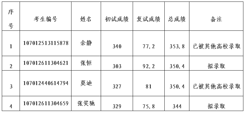 因公司指标调整,现追加2个电子信息专业招生计划,根据太阳成集团tyc7111cc硕士研究生复试录取办法,现按照电子信息专业一志愿考生总成绩排名顺次递补,公示结果如下: