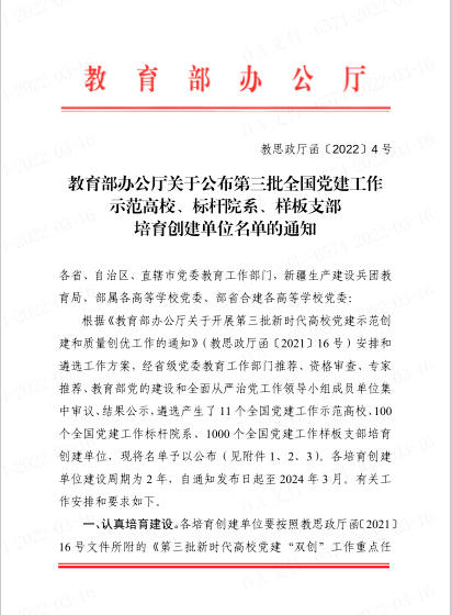 近日,第三批全国党建工作示范高校、标杆院系、样板支部培育创建单位名单公布,太阳成集团tyc7111cc测控通信系教职工党支部入选全国党建工作样板支部培育创建单位。