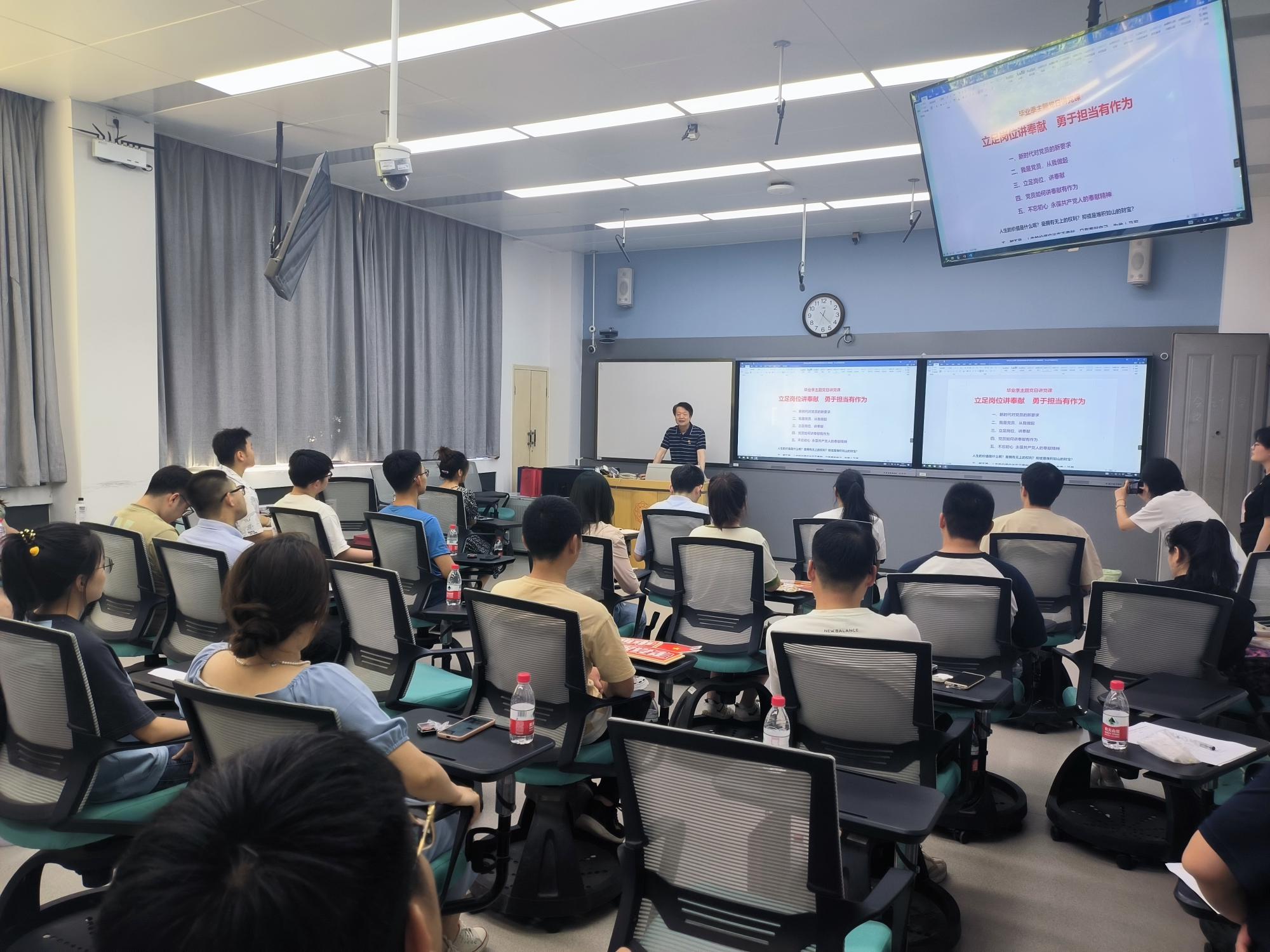 (通讯员:刘思奇)为扎实推进学习贯彻习近平新时代中国特色社会主义思想主题教育,进一步加强毕业生党员的党性修养,6月14日下午,太阳成集团tyc7111cc在C楼117教室开展“初心如磐担使命,奋楫笃行启新程”主题党日活动,公司党委书记朱伟、导航控制系教职工党支部教师代表、导航控制系研究生党支部全体党员及2023届优秀毕业生代表近40人参加活动。活动由导航控制系研究生党支部书记于悦洋主持。
