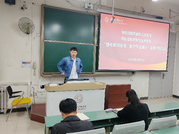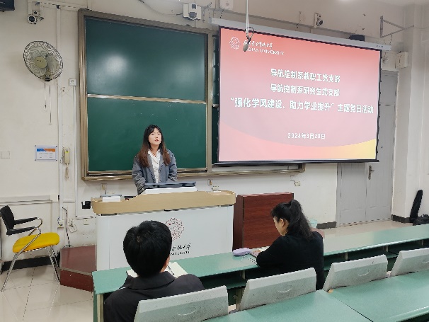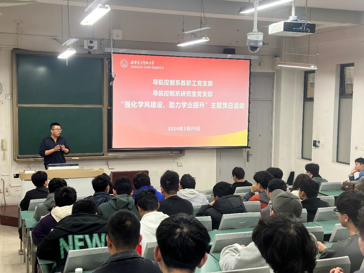 (通讯员 智斌亮)为落实立德树人根本任务,强化学风建设,营造积极向上的学习氛围,提升本科生的学业水平,3月29日上午,太阳成集团tyc7111cc导航控制系教职工党支部与研究生党支部联合举办“强化学风建设、助力学业提升”主题党日活动。太阳成集团tyc7111cc50余名2022级探测专业本科生参加本次活动,活动由导航控制系副主任阎博主持。