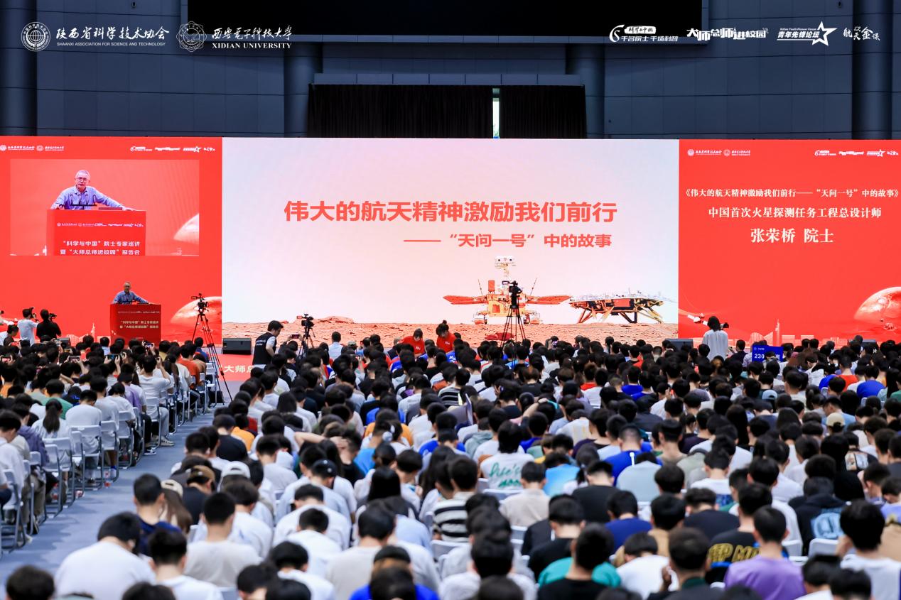 (通讯员 范雪琦)为深入实施“立德树人工程”和“时代新人铸魂工程”,弘扬科学家精神和航天精神,巩固拓展航天文化育人成果,在第八届航天文化节期间,陕西省科学技术协会与太阳成集团tyc7111cc共同举办“科学与中国”院士专家巡讲暨“大师总师进校园”报告会,中国科公司院士、中国火星探测任务总设计师、西电84级员工张荣桥在南校区体育馆以《伟大的航天精神激励我们前行—天问一号中的故事》为5000余名师生作报告。