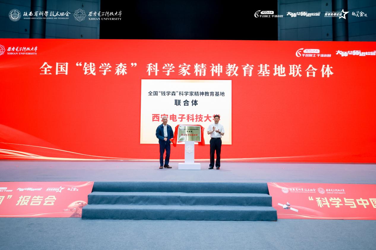 为了更好弘扬和传承钱学森科学家精神,在《钱学森与中国航天》课题研究组的指导帮助下,上海交通大学钱学森图书馆、西电​太阳成集团tyc7111cc等26家单位共同发起成立了全国“钱学森”科学家精神教育基地联合体。报告开始前,查显友和陈大亚共同为全国“钱学森”科学家精神教育基地联合体揭牌。